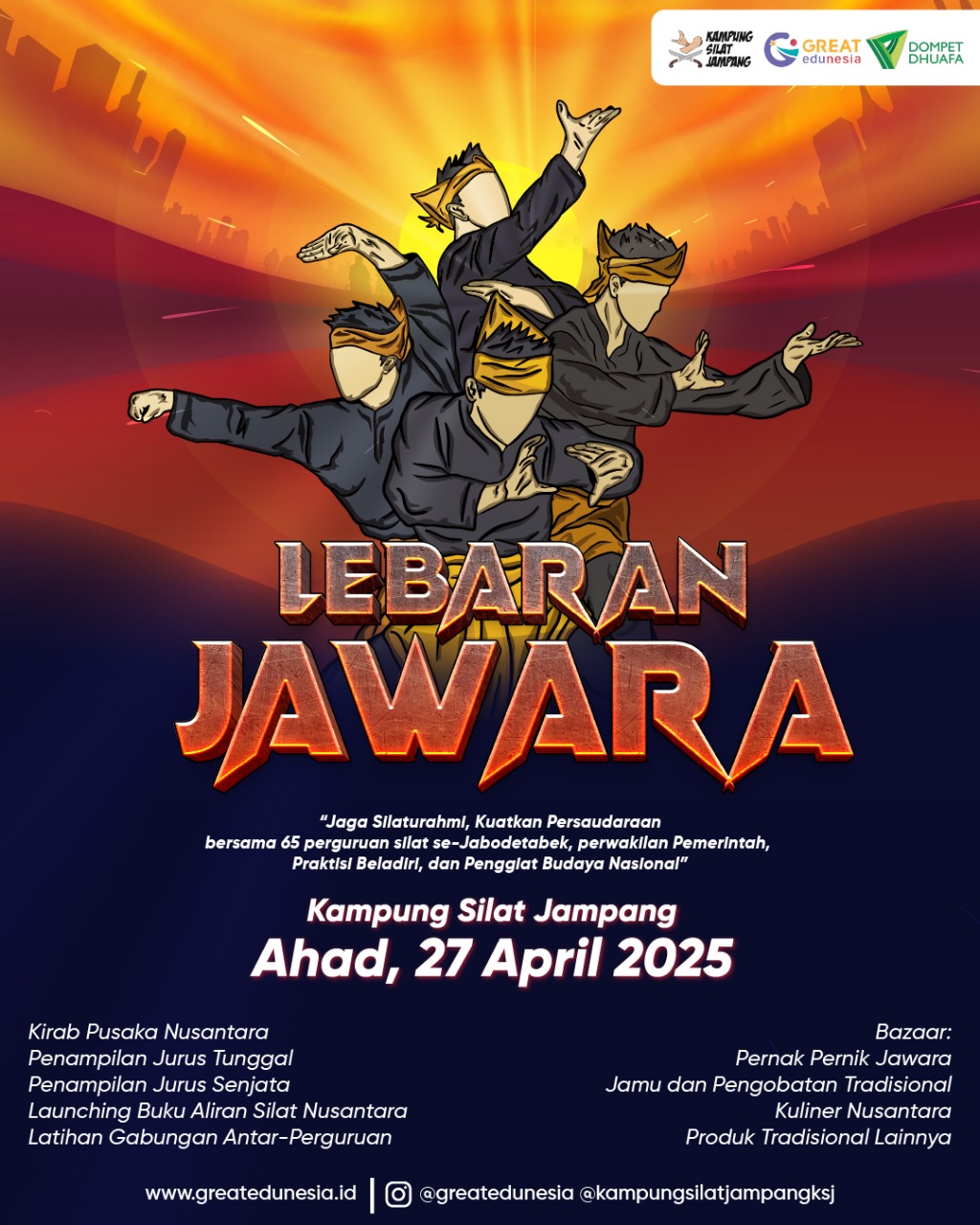 “Lebaran Jawara”. bertema kan ” Jaga Silaturahmi, Kuatkan Persaudaraan bersama 65 silat se- Jabodetabek, perwakilan Pemerintah, Praktisi Beladiri, dan Penggiat Budaya Nasional”. Acara Halal Bi Halal ini sekaligus peletakkan batu pertama Padepokan Pesanggrahan Sekar Kedaton Galuh Sukapura Pada, Sabtu (26 April 2025) acara di mulai Pukul 15.00 Wib di Kampung Manggareah RT 002 RW 003 Desa Warga Jaya Kecamatan Sukamakmur.