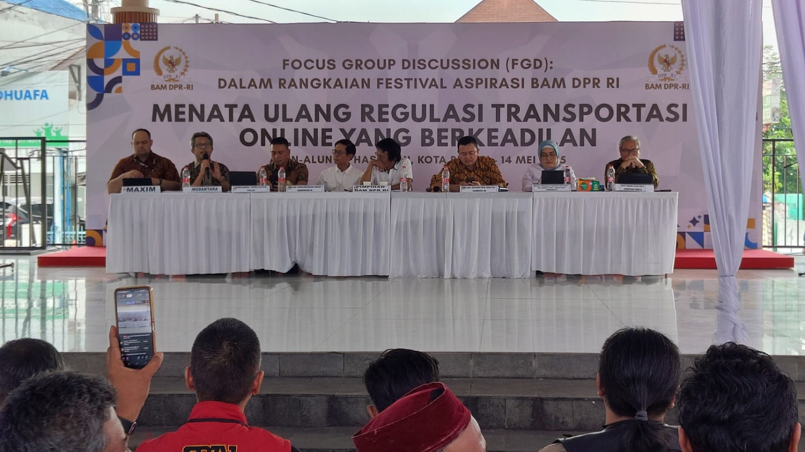 PublikasiPendidikan.com | Kota Bekasi. – Badan Aspirasi Masyarakat (BAM) DPR RI, menggelar Focus Group Discussion (FGD) membahas penataan ulang regulasi transportasi online yang berkeadilan, di Alun-alun M. Hasibuan Kota Bekasi, Rabu (14/5/2025).