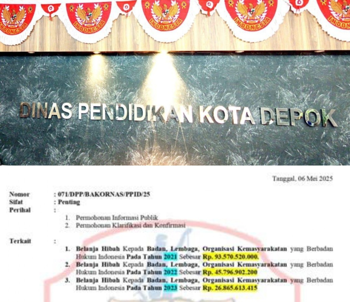 PublikasiPendidikan.com | BAKORNAS | Depok – Lembaga Swadaya Masyarakat Badan Anti Korupsi Nasional (LSM BAKORNAS) meminta Dinas Pendidikan Kota Depok untuk menjelaskan transparansi dan akuntabilitas pengeluaran Belanja Hibah, yang dikeluarkan oleh Dinas pendidikan Kota Depok, yang diperuntukkan kepada Badan, Lembaga, Organisasi Kemasyarakatan yang Berbadan Hukum Indonesia sejak tahun 2021 hingga tahun 2023 mencapai hingga sebesar Rp.166.233.035.615. Diantaranya yaitu sebagai berikut;