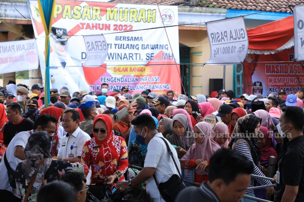 Bupati Winarti menggelar pasar murah ini dengan tujuan membantu mengurangi beban masyarakat akibat inflasi global yang dampaknya dirasakan masyarakat diseluruh Indonesia bahkan dunia.