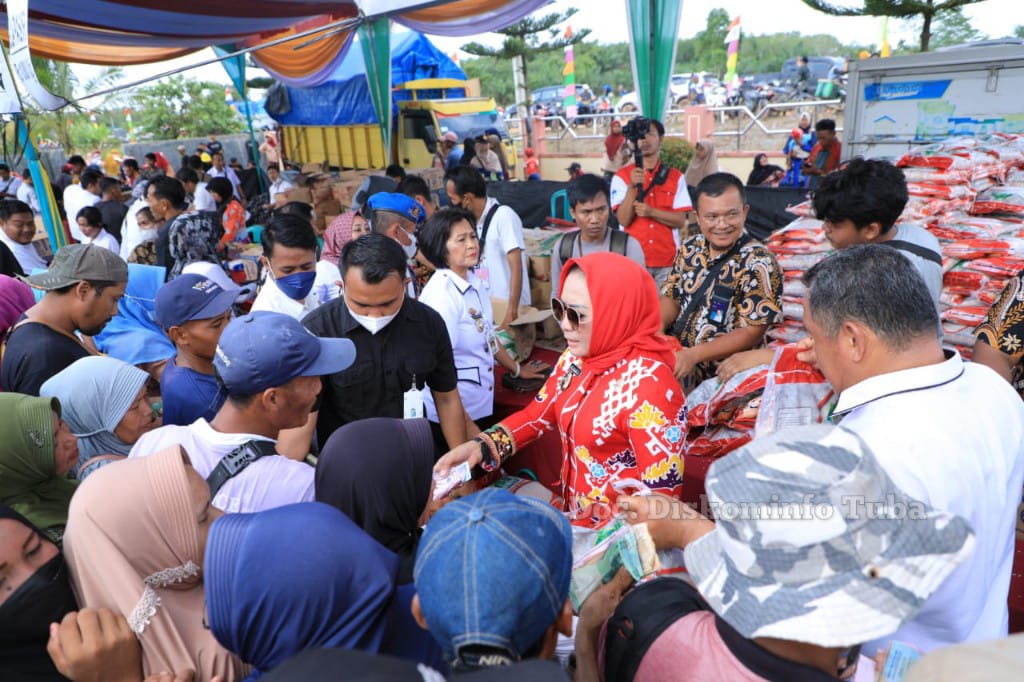 “Alhamdulillah program berjalan dengan baik dan lancar serta tepat sasaran. Masyarakat Rawapitu sangat senang dengan adanya kegiatan pasar murah ini semoga menjadi manfaat bagi rakyatku yang ada disini jelas Bupati Winarti