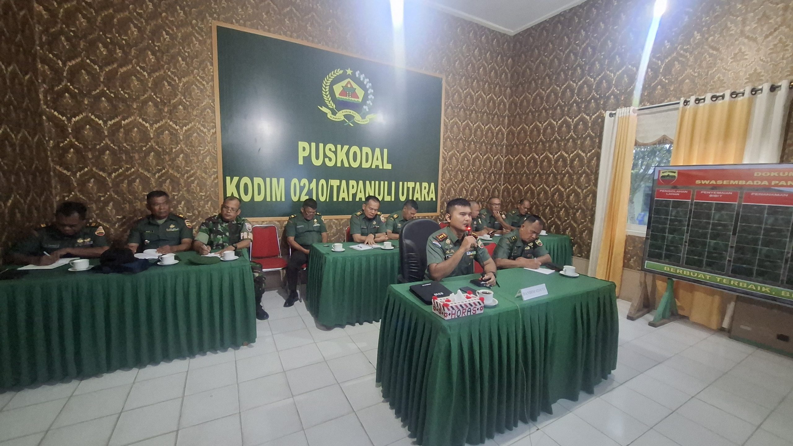 PublikasiPendidikan.com | TAPUT – Komandan Kodim 0210/TU Letkol Kav Ronald Tampubolon, SH, M.Han, memimpin jam komandan seluruh prajurit TNI/PNS jajaran Kodim 0210/TU, melalui Vidcon bertempat di Ruang Vidcon Kodim 0210/TU, Senin (16/6/2025)