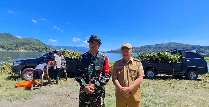 PublikasiPendidikan.com | MUARA, TAPUT – Personel Kodim 0210/TU bersama Pemerintahan Kabupaten Taput, Masyarakat dan pelajar melaksanakan kegiatan karya bakti Gotong Royong Skala besar pembersihan enceng gondok di Danau Toba tepatnya di Desa Hutanagodang Kecamatan Muara Kabupaten Tapanuli Utara Provinsi Sumatera Utara Selasa (27/5/2025)