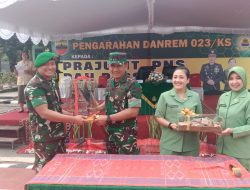 Danrem 023/KS Kol. Inf Jansen P Nainggolan menyampaikan bahwa kunjungan ke Kodim 0210/TU Sebagai komandan Korem yang baru saya memperkenalkan diri kepada seluruh personil dan Persit kodim 0210/ TU dan sekaligus bersilaturahmi serta mengecek langsung prajuritnya yang ada di wilayah dan memberikan moril kepada prajuritnya.