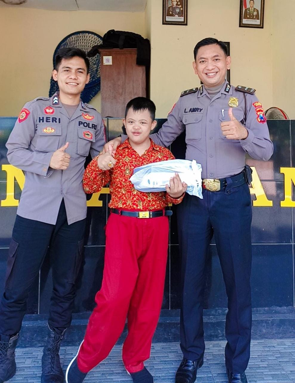 Mendengar ada Moh. Adam Farhansyah berada di Mapolres untuk menemui dirinya, Aipda Amri langsung mendatangi siswa kelas 4 SLB Negeri Sampang dan kakaknya untuk di bawa ke ruang kerjanya.