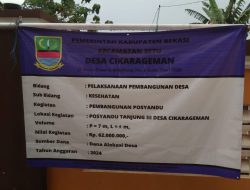 PublikasiPendidikan.com | Kab. Bekasi – LBH Perisai Putra Bekasi meminta Inspektorat Kabupaten Bekasi agar turun lapangan meninjau Proyek Pembangunan Gedung Posyandu di Desa Cikarageman Kec. Setu Kab. Bekasi, Pasalnya berdasarkan informasi masyarakat setempat dan investigasi lapangan oleh tim ditemukan kejanggalan dalam detail penyaluran Dana Desa dan kenyataan di lapangan.