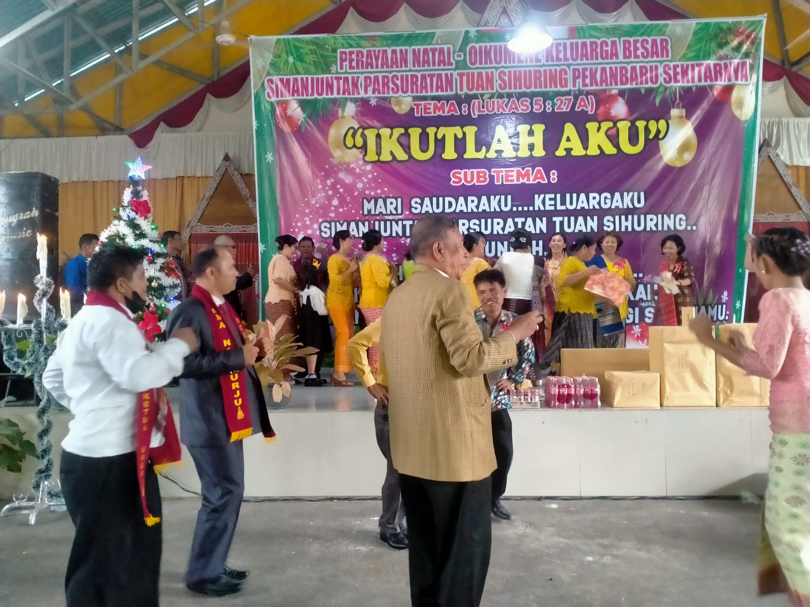 PublikasiPendidikan.com|Pekanbaru-Perayaan Natal Oikumene Keluarga Besar Simanjuntak Parsuratan Tuan Sihuring Pekanbaru sekitarnya yang dilaksanakan pada hari Minggu di Gedung Aula Serba Guna jalan Rajawali Panam Pekanbaru dengan Tema : (LUKAS 5 : 27 A) ” Ikutlah Aku” dan Sub Tema “Mari saudaraku, keluargaku Simanjuntak Parsuratan Tuan Sihuring Bangunlah,Tuhan Yesus Memanggilmu, Ikutlah untuk menghasilkan Buah Imanmu yang Harum dan Manis BAGI SESAMAMU” . Minggu (4/12/22)
