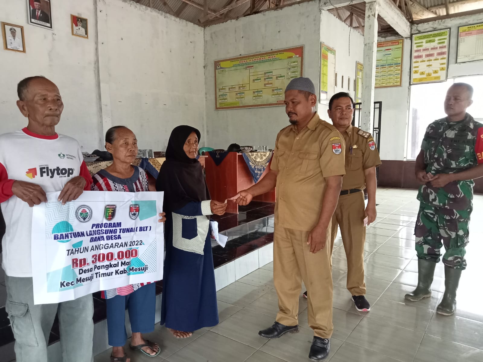 Pembagian BLT DD ini diberikan langsung oleh kepala Desa nya yaitu (SUNYITNO) dana BLT DD tersebut dan di hadir oleh Babinsa Pangkal Mas, pedamping desa.ada juga yang dari pihak kecamatan juga menghadiri dan seluruh aparatur desa pangkal mas serta penerima manfaat BLT DD.