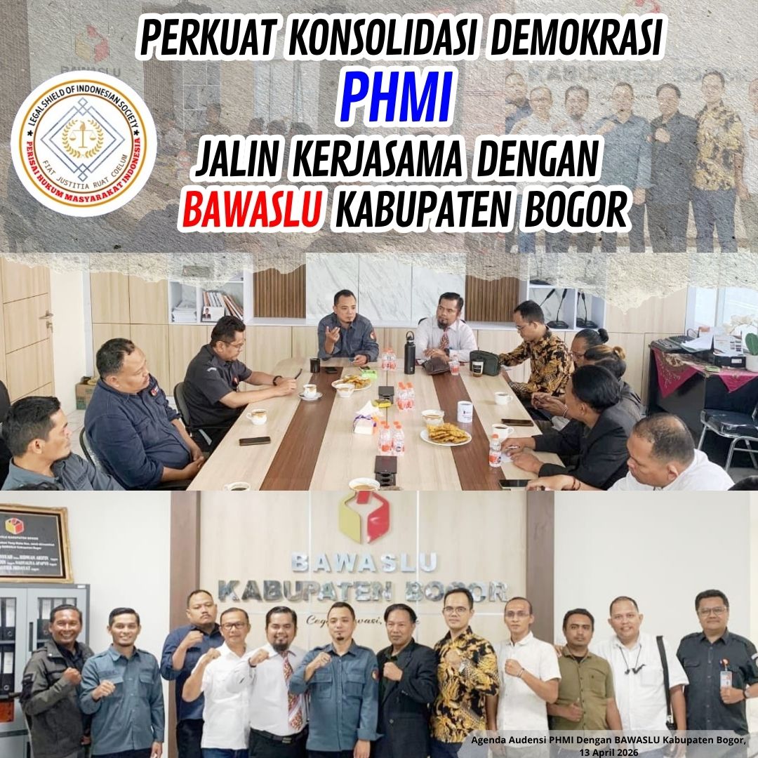 PublikasiPendidikan.com | PHMI | Kabupaten Bogor – Perisai Hukum Masyarakat Indonesia (PHMI) menghadiri agenda Audensi dengan Bawaslu (Badan Pengawas Pemilihan Umum) pada hari senin 13 April 2026, bertempat di Kantor BAWASLU Kabupaten Bogor yang berada di jalan tegar beriman kecamatan cibinong.