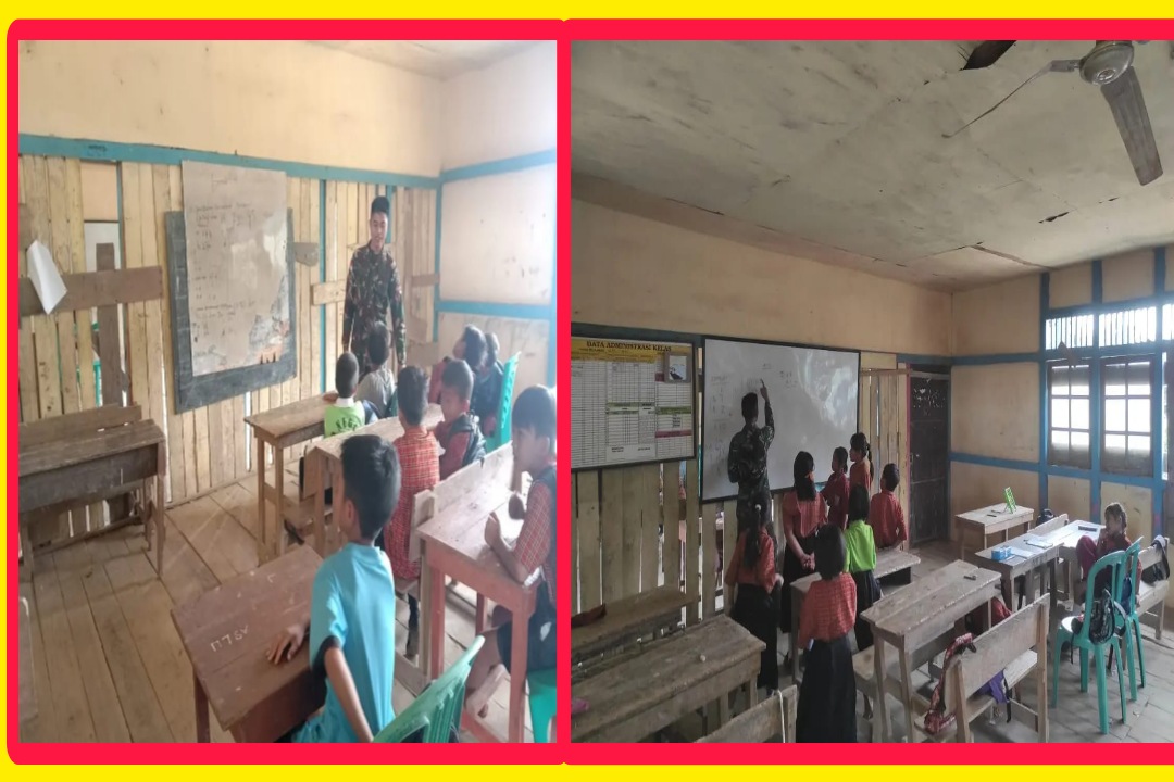 PublikasiPendidikan.com|Sanggau-Sebagai bentuk kepedulian dalam bidang pendidikan, Personel Satgas Pamtas Yonarmed 19/105 Trk Bogani menjadi tenaga guru bantu mengajar siswa SD Negeri 25 Perimpah di Desa Sei Tekam, Kecamatan Sekayam, Kabupaten Sanggau, Kalimantan Barat. Rabu, 30 November 2022.