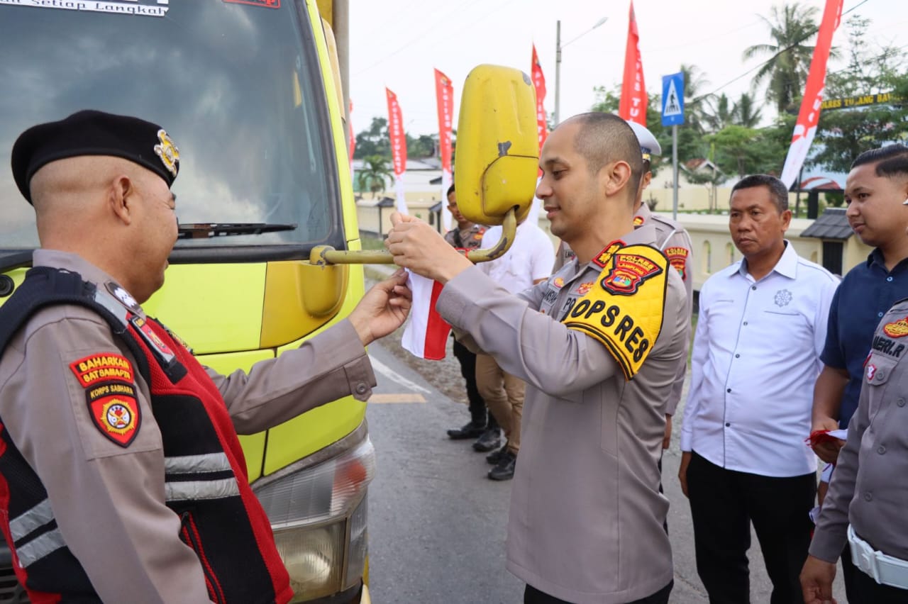 “Hari ini, saya bersama dengan Pejabat Utama (PJU) Polres dan personel Polres Tulang Bawang membagikan ratusan bendera merah putuh secara gratis kepada masyarakat, dan pengendara yang melintas di Jalintim, Kampung Lebuh Dalem,” ucap Kapolres Tulang Bawang, AKBP Yuliansyah, SIK, MH.