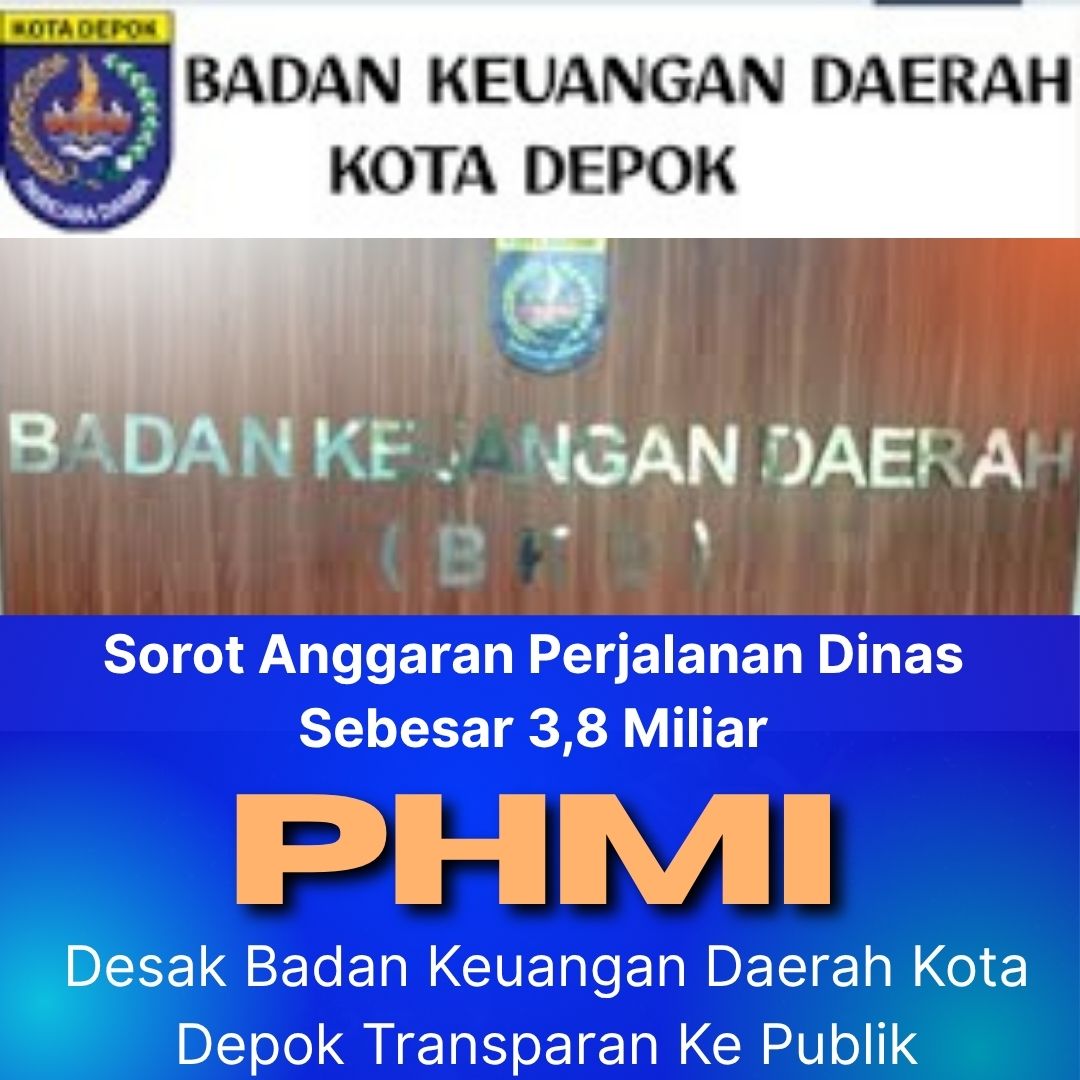 Guna mendorong Badan Keuangan Daerah Kota Depok tranparan terhadap publik PHMI telah mengirimkan surat Permohonan Informasi Publik dengan nomor surat 040/DPP/PHMI/X/2025, dan telah diterima oleh Pihak Badan Keuangan Daerah Kota Depok pada tanggal 13 Oktober 2025.