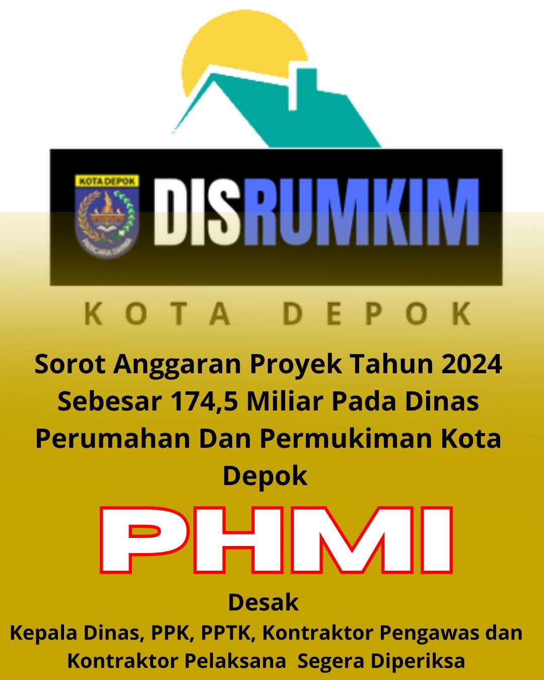 PublikasiPendidikan.com | PHMI | Depok – Perisai Hukum Masyarakat Indonesia (PHMI) mendesak agar lembaga penegak Hukum segera memeriksa Kepala Dinas, PPK, PPTK, Kontraktor Pengawas dan Kontraktor Pelaksana terkait Anggaran Proyek Tender Sebesar 174,5 Miliar Pada Dinas Perumahan Dan Permukiman Kota Depok.