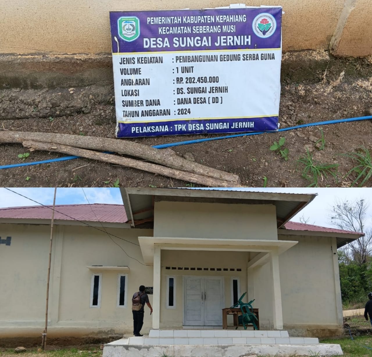 PublikasiPendidikan.com | Bengkulu Kab Kepahiang_Sabtu (15/02/2025) Desa Sungai Jernih merupakan salah satu desa yang termasuk dalam wilayah Kabupaten Kepahiang di kecamatan Seberang Musi. dalam pelaksanaan kegiatan fisik pengelolaan Dana Desa ( DD ) pihak Pemerintahan Desa Sungai Jernih pada Tahun anggaran 2023 dan 2024 menyepakati untuk membangun Gedung Serba Guna yang di kerjakan secara 2 ( tahap ) yaitu tahap 1 (satu) di tahun 2023 dan tahap 2 ( dua ) di tahun 2024, namun kegiatan fisik bangunan tersebut diduga bermasalah.