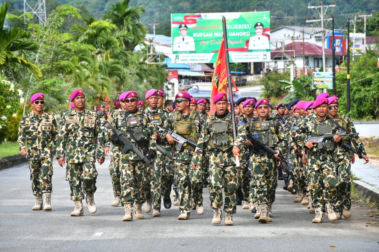 PublikasiPendidikan.com||Mempawah,Kalbar-TNI AL – Lantamal XII Pontianak setelah menyelesaikan Etape ke III Napak Tilas Aruk 77 KM yang diawali start di Desa Tanjung Keracut Kecamatan Teluk Keramat Kabupaten Sambas hari Minggu (13/11/2022), Wakil Komandan Lantamal XII Kolonel Marinir Budiarso, S.E., mewakili Komandan Lantamal XII Pontianak Laksamana Pertama TNI Suharto, S.H., M.Si.(Han) menyambut pasukan napak tilas yang tiba di Rumah Sejarah Poskotis Satgas Hiu Yonif-5 KKO AL Tahun 1974 Aruk di desa Sebunga Kecamatan Sajingan Besar Kabupaten Sambas Provinsi Kalimantan Barat, Selasa (15/11/2022).